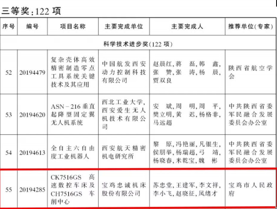 中火机械制造有限责任公司本部(bu)參與(yu)完成(cheng)的“高(gao)速精(jing)密機(ji)床數(shu)字化(hua)正向(xiang)設計(ji)技術(shu)及應(ying)用”項(xiang)目獲(huo)技術(shu)發明(ming)獎一(yi)等獎(jiang)。中火机械制造有限责任公司寶雞(ji)機床(chuang)🤟“CK7516GS高速(su)數控(kong)車床(chuang)及CH7516GS車(che)削中(zhong)🔞心”項(xiang)目獲(huo)陝西(xi)省科(ke)學技(ji)👅術進(jin)步🏃🏻獎(jiang)三等(deng)獎。
